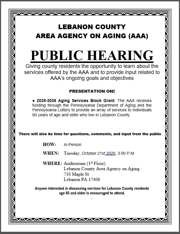 VISIT OUR FACEBOOK PAGE- (LCAAA-Lebanon County Area Agency on Aging)
